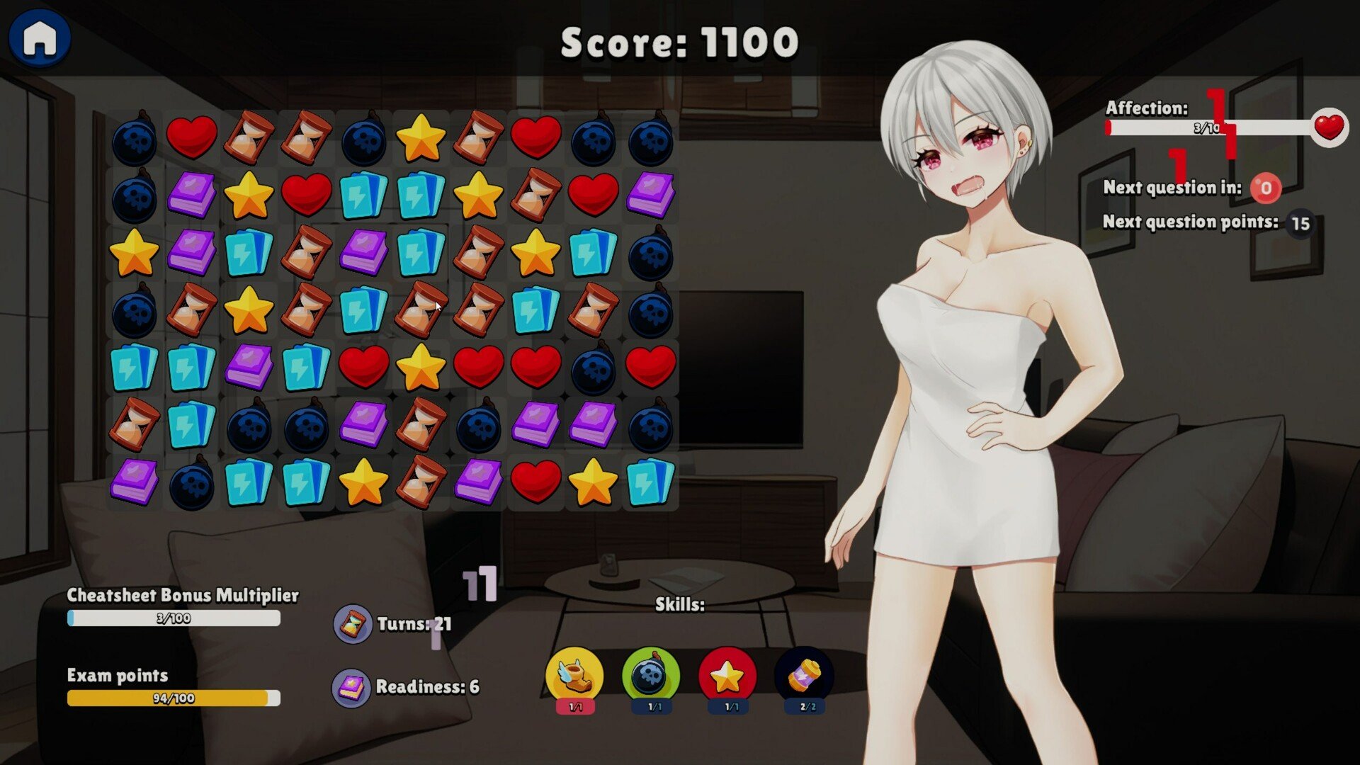 The gameplay consists of solving a puzzle level. Once you've solved the puzzle you can move on to the next scene. There are 3 girls and each one has her own story and progression. You'll get to know these girls better and see more of their sexy bodies as you play through the game. Each girl is different!